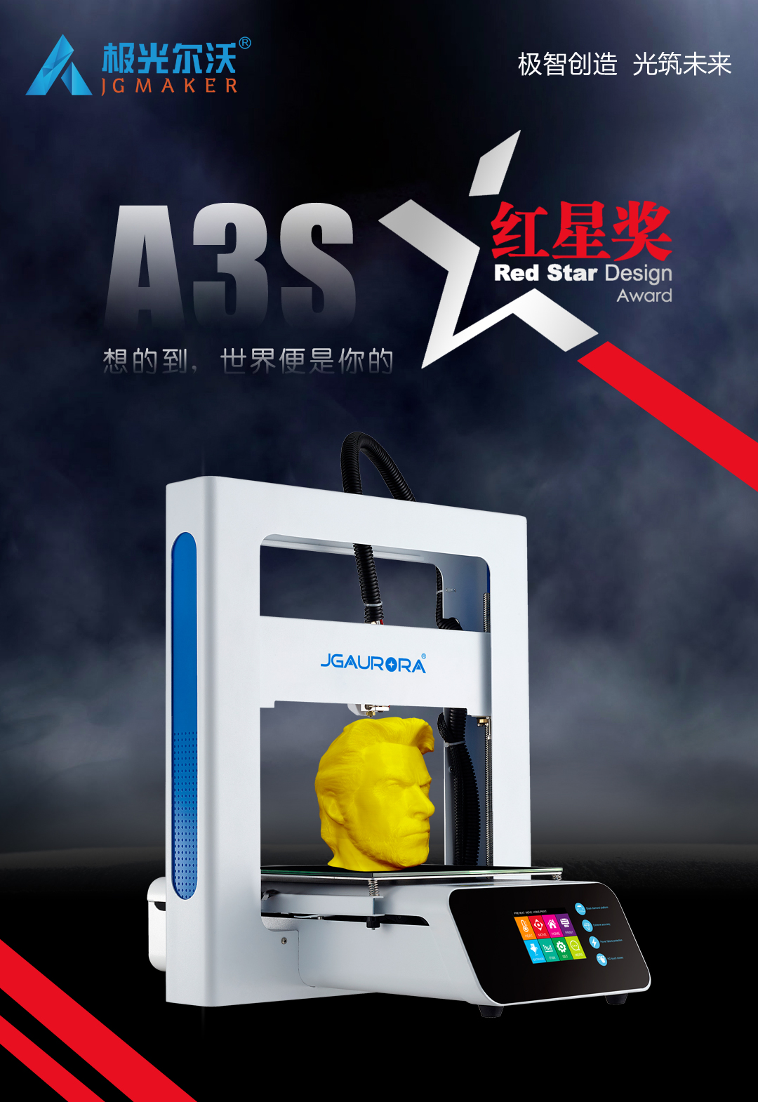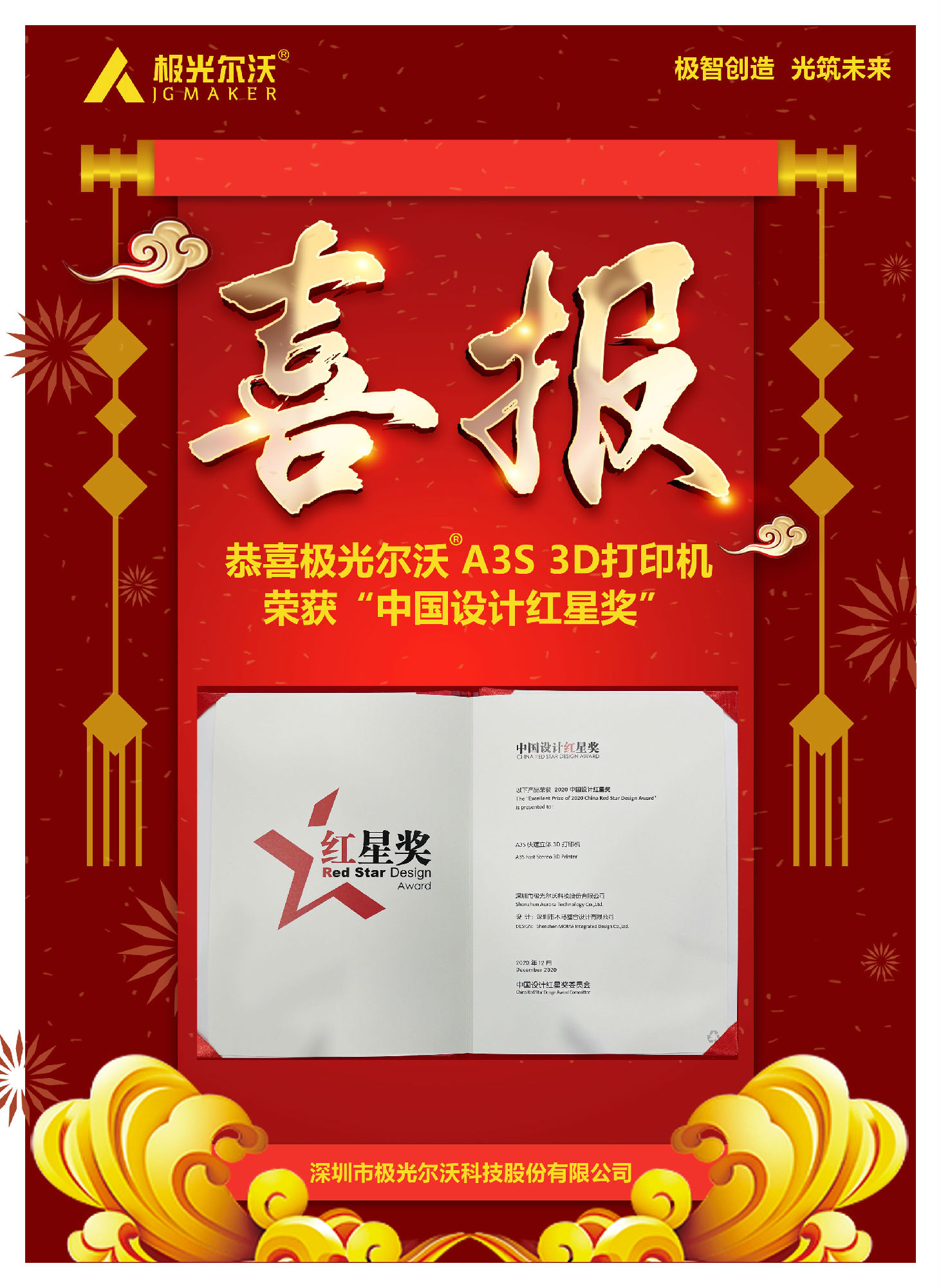12月9日,2020中國設計紅星獎頒獎活動在北京舉行。2020年中國設計紅星獎以"融合的時代 凝聚的力量"為主題,來自全球5000家企業的7000余件產品參與角逐極光爾沃A3S 3D打印機憑借新穎獨特的設計理念、簡潔純粹的產品形象從眾多產品中脫穎而出,獲得評委一致青睞,一舉拿下2020中國設計紅星獎。