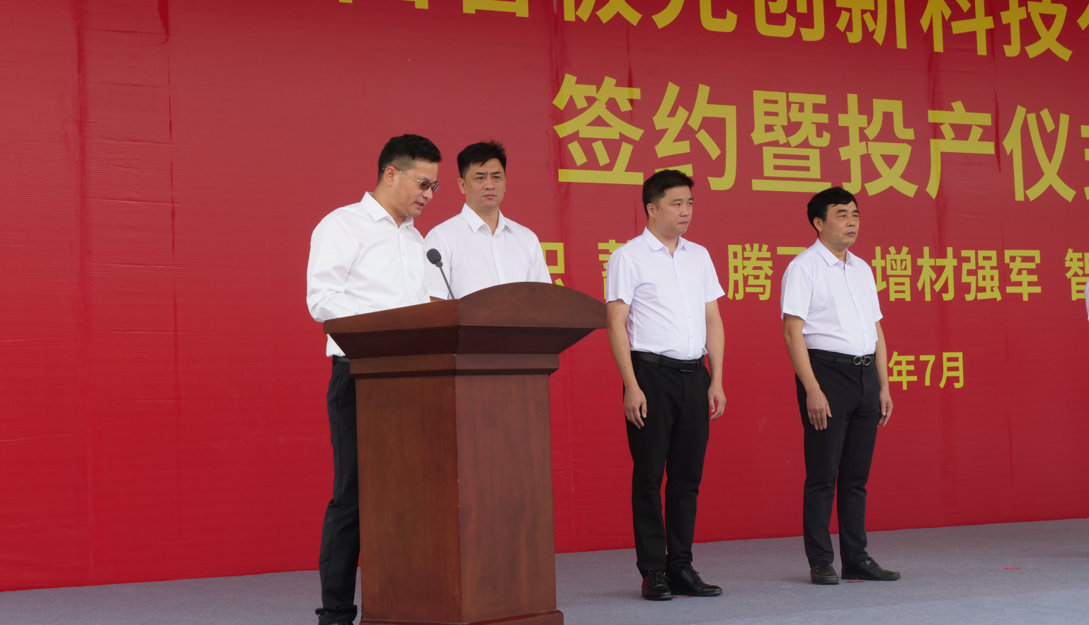 寧都縣縣委副書記、縣長何國杰宣布江西省極光創新科技有限公司正式開工投產