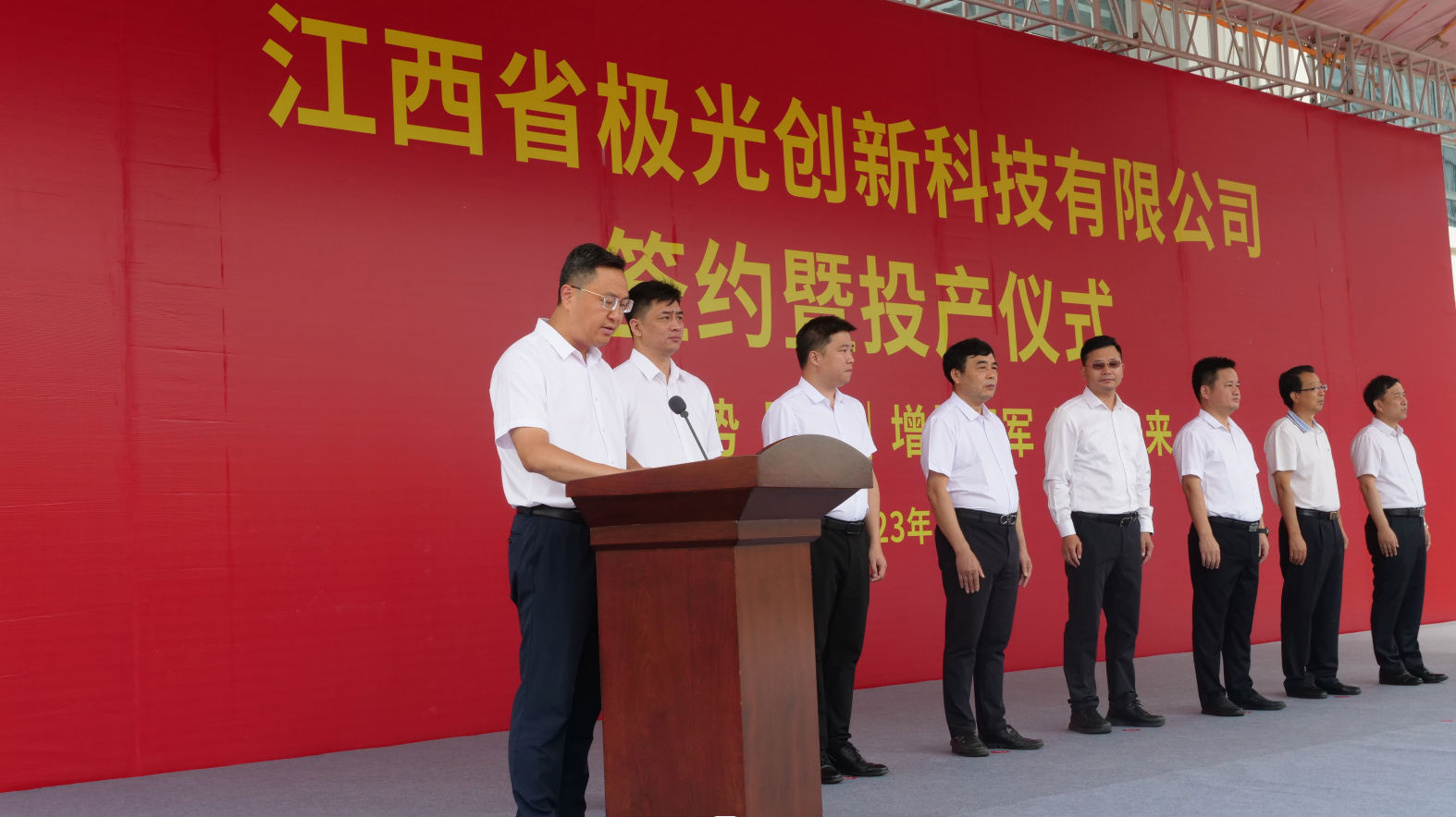 在發展政策的浪潮中,2023年7月28日,江西省極光創新科技有限公司簽約暨投產揭牌儀式在江西省寧都縣圓滿落幕。