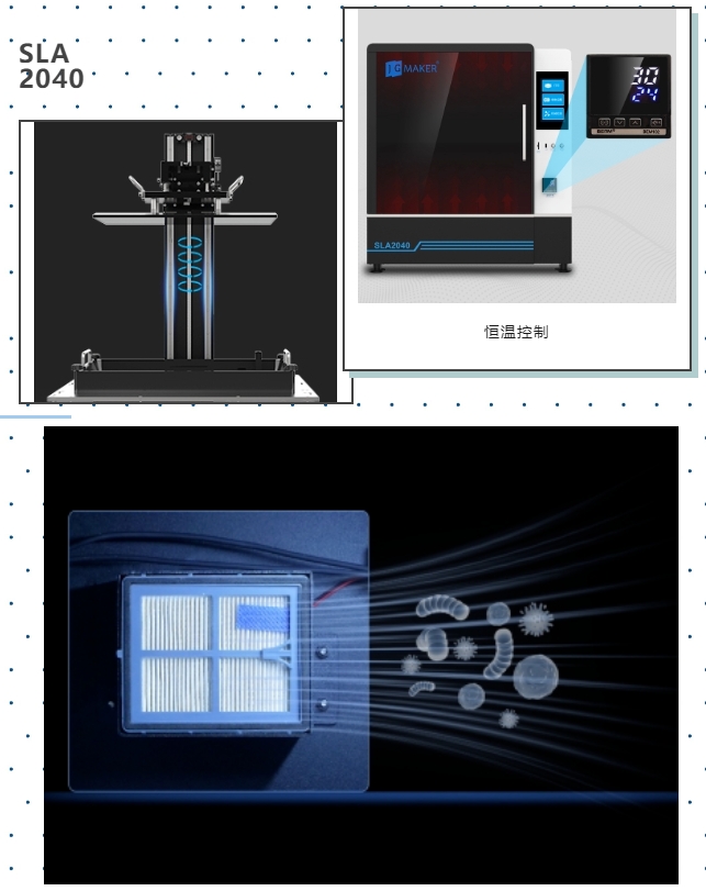 伺服電機控制系統(tǒng)搭配的精密滾珠絲桿,有效降低打印過程中產(chǎn)生的噪音,真正實現(xiàn)靜音打印。同時,SLA 2040還內(nèi)置了多層空氣過濾網(wǎng),有效凈化打印環(huán)境和料池樹脂異味,讓打印環(huán)境更舒適干凈!