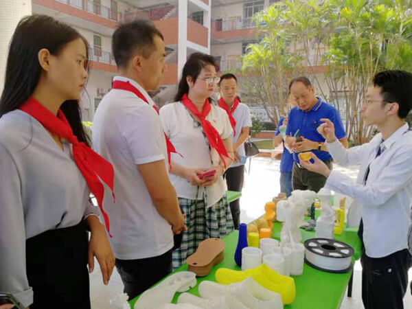鎮(zhèn)田小學校長等領導參觀了解極光爾沃3D打印機,咨詢并了解3D打印的行業(yè)現(xiàn)狀應用,以及了解3D打印在校園的發(fā)展情況。隨行領導對3D打印模型十分好奇,表示3D打印的物品十分精致,和傳統(tǒng)的制造業(yè)工藝不相上下,機器自動化完成打印。生活小禮盒,擺飾等受到了喜愛,得到了一致好評。