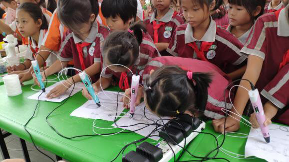 下午活動過程中,少先隊員們使用3D打印筆為自己繪制了屬于自己的手工眼鏡模型,少先隊員們認真執(zhí)著完成作品,一點都不馬虎,一點一點的擠出耗材,在模型上完成眼鏡的圖形繪制,真為少先隊員們的動手手工能力表示贊贊贊。