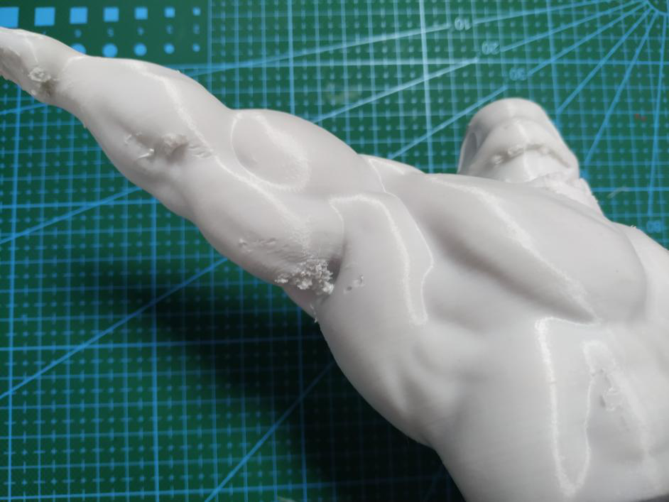 (如圖,豎直打印不僅能減少支撐面,而且還能提高整個(gè)手臂的精度效果,但是實(shí)際打印中,由于很纖細(xì)極容易失敗,只能犧牲表面效果來保證成功率。)