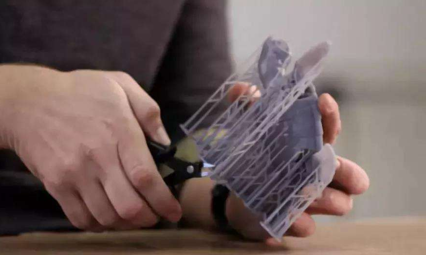 在打印過程中,為了保證物體的穩定性,可能會添加一些支撐結構。這些結構在打印完成后需要被去除,以獲得更加光滑的表面??梢韵扔镁凭?/span>15分鐘,讓模型表面多余的樹脂化解,支撐軟化后使用剪刀、剪鉗或者是砂紙等工具來去除這些支撐結構。