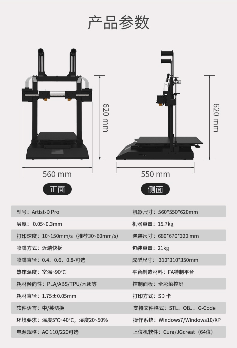 電源規格:AC110/220可選上位機軟件:Cura/JGcreat(64位)