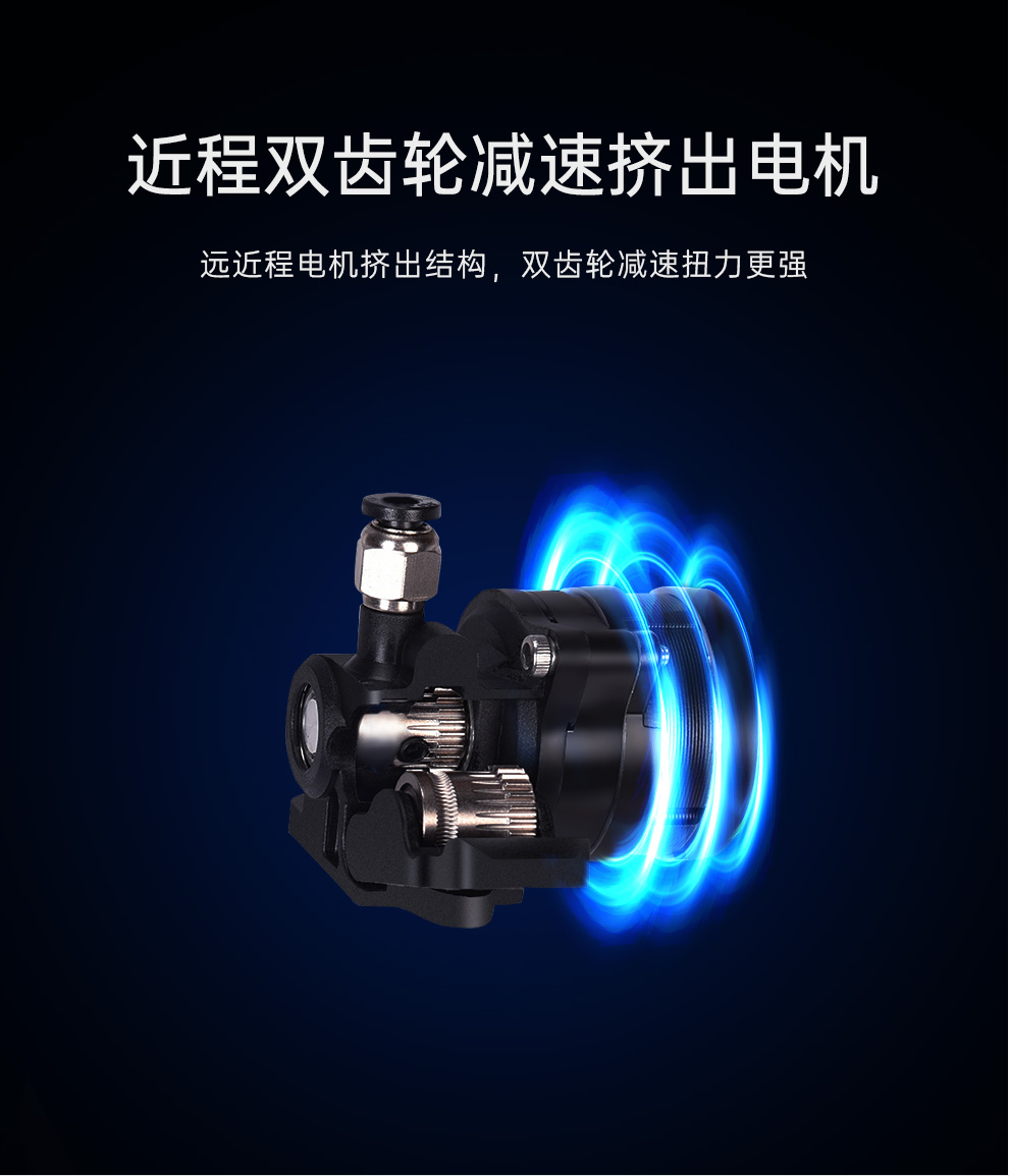 雙齒輪減速扭力更強(qiáng),高精度傳感器多點(diǎn)全自動檢測,打印自動輔助補(bǔ)償,賦予3D打印機(jī)更強(qiáng)勁動力,運(yùn)行流暢不卡頓