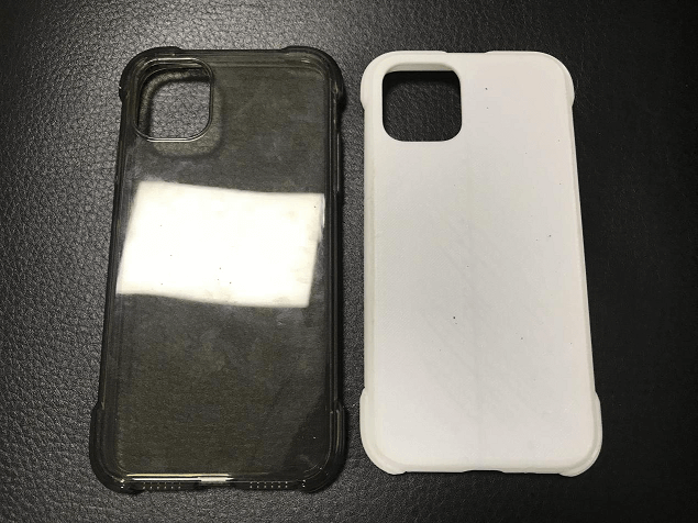 3D打印手機(jī)殼白模展示,對比實(shí)物圖,可以看得出來,大小尺寸經(jīng)過研發(fā)工程師的修改,更合適配套新款手機(jī)尺寸。